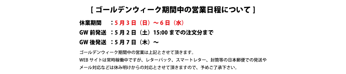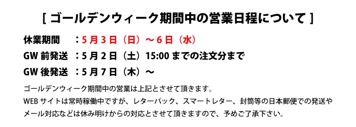 5月店休日のお知らせ